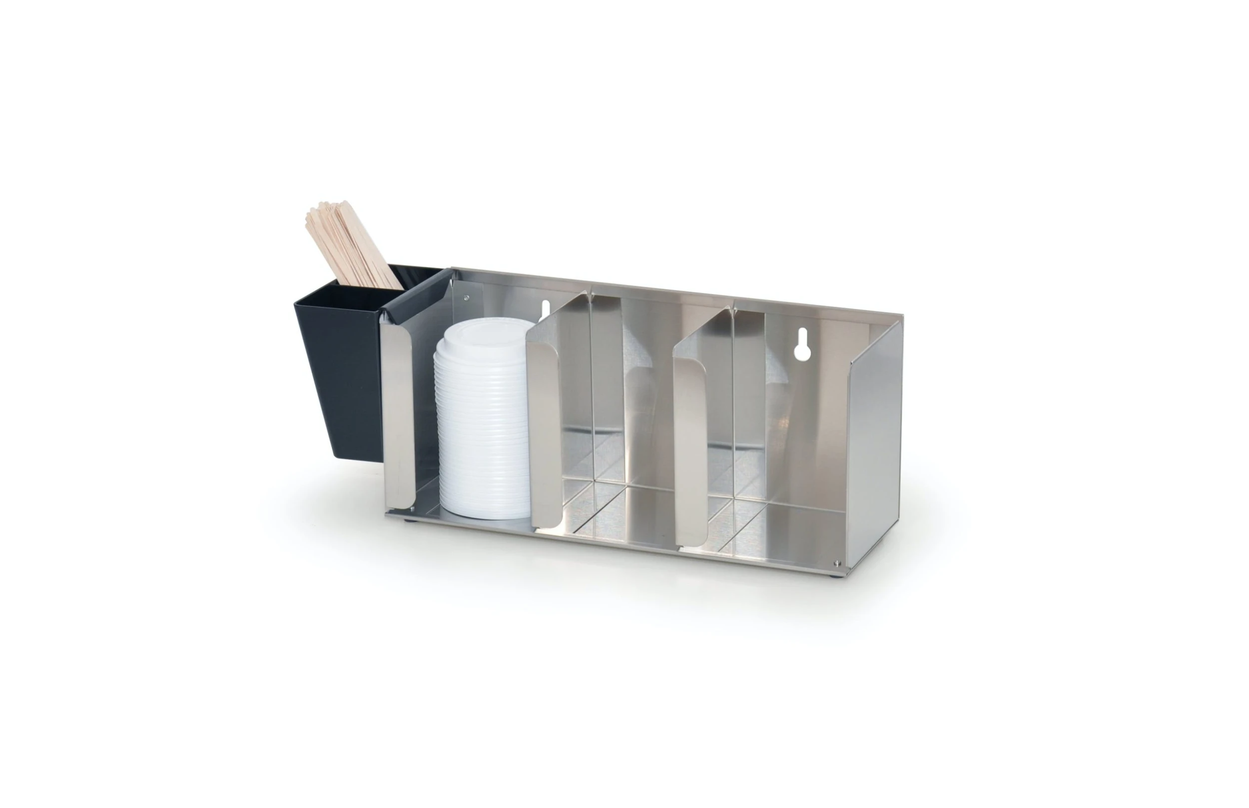 - Deckelspender mit 3 Fächern für Deckel und einem Trinkhalmfach